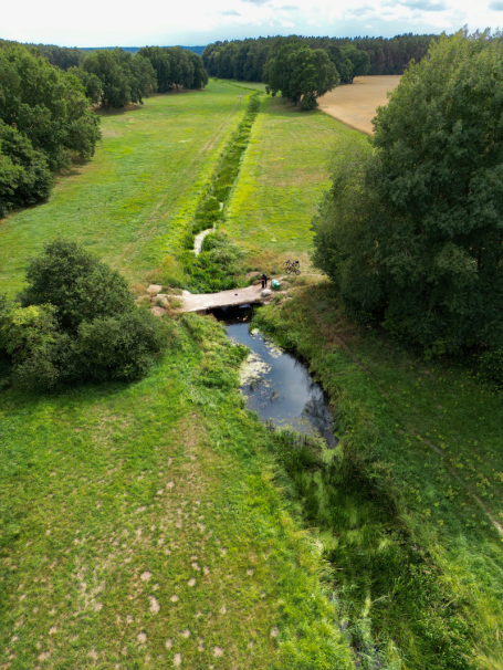 Errichtet wurde die Brücke an einem Ort, an dem es zuvor keine Brücke über die Mooster gab. In DDR-Zeiten, noch Ende der 60er Jahre, fuhren die Panzer einfach durch den Ort, um zu ihren Zielen zu gelangen. Nach dem Neubau der Straße wollte man verhindern, dass die Panzer den neuen Belag gleich wieder zerstören, so wurde die Brücke gebaut.