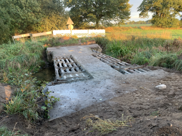 Obwohl die alte Brücke bereits seit längerer Zeit gesperrt war, entsprechende Schilder aber immer wieder "verschwanden", versuchte die Gemeinde, durch große Steine, Sandhaufen und zum Schluss auch mit Treckergewichten eine Querung mit Pkw oder anderen Gefährten zu verhindern. Bei einer erneuten Brückenprüfung (finden alle paar Jahre offiziell statt) wurde die Brücke auf Grund des Bauzustandes erneut gesperrt. Sie war nicht mehr zu retten. Neubauten von Brücken kosten sehr, sehr viel Geld. So viel Geld für ihre Brücken hatte und hat die Gemeinde Siggelkow nicht. Zumal bereits die ebenfalls gesperrte und mehr als baufällige Brücke über den Gehlsbach bereits (mithilfe einer benachbarten Gemeinde) neu errichtet wurde, kam eine Finanzierung der Panzerbrücke nicht in Frage.